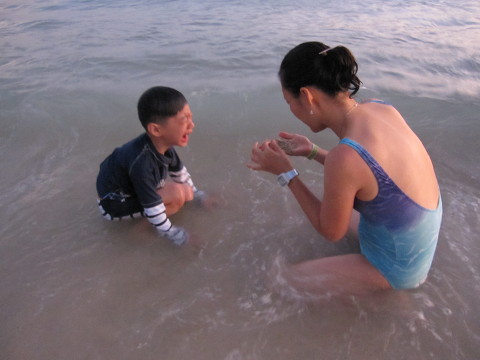호텔 도착후 시간이 조금 여유로와 아이들을 바닷가 로 데려가 수영을 시켰습니다.