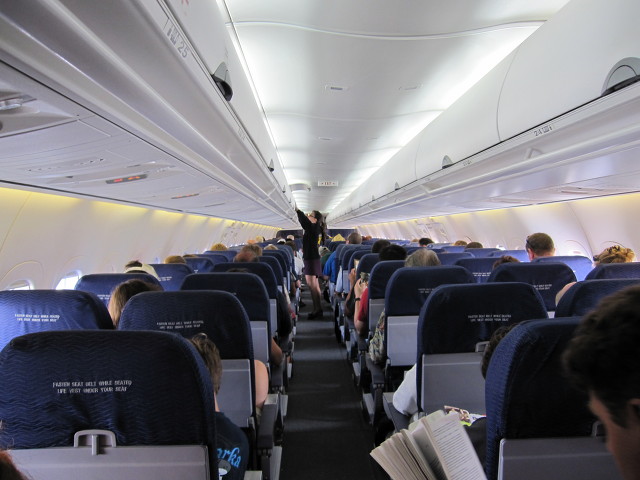 기내 복도에 스튜어디스가 보이네요