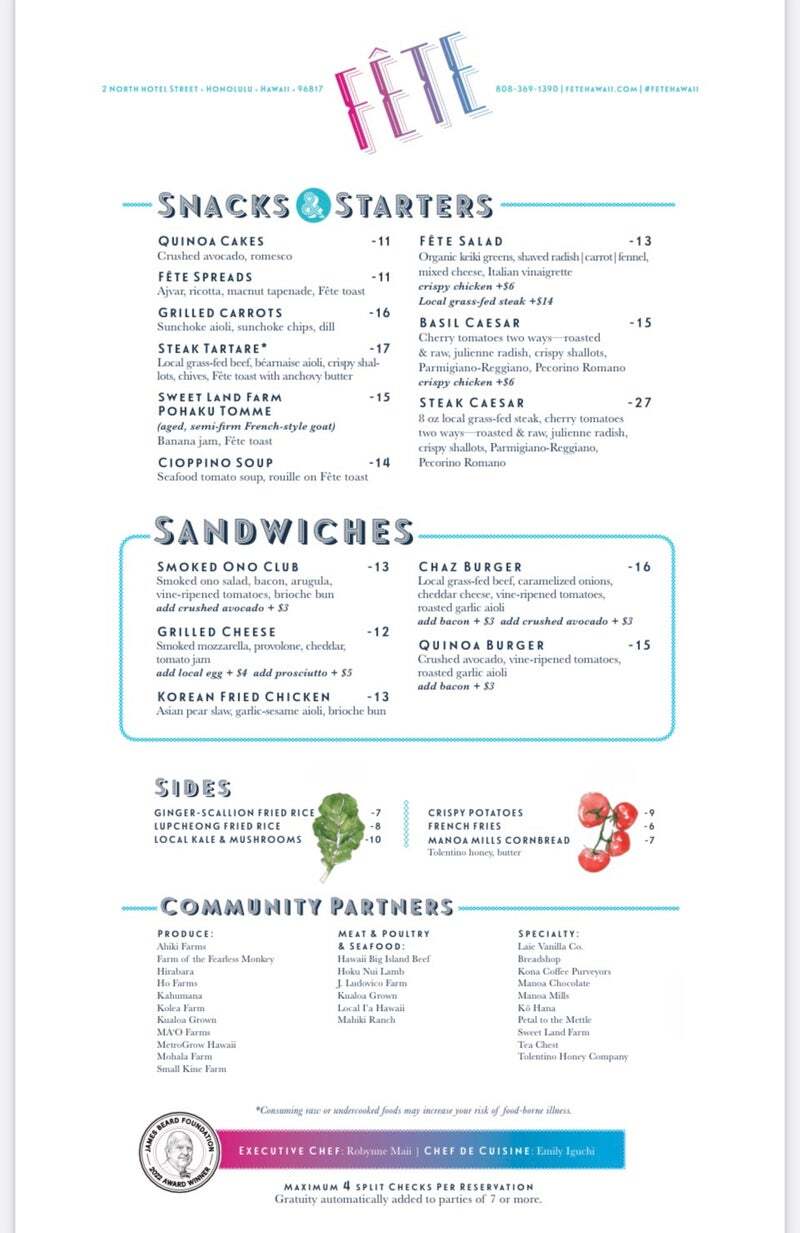 하와이 출신의 쉐프가 로컬 식재료를 활용하여 다양한 요리를 선보이는 페트(Fete)