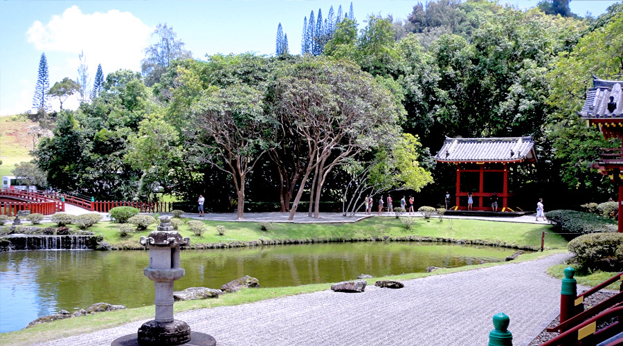 많은 하와이 영령의 안식처인 뵤도인 사원은 토치진저나 헬레코니아 같은 열대 꽃들이 묘지 앞에 놓여 망자들의 넋을 달래어 줍니다.