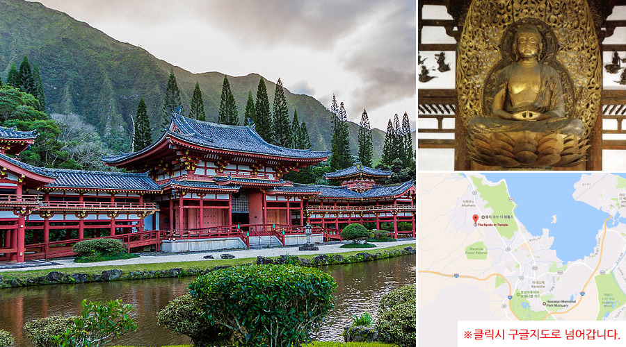 일본 우지에 있는 절을 그대로 모방해 못을 사용하지 않는 건축술로 지은 뵤도인은 일본인의 하와이 이주 100년 기념물로 1968년에 봉납했습니다.