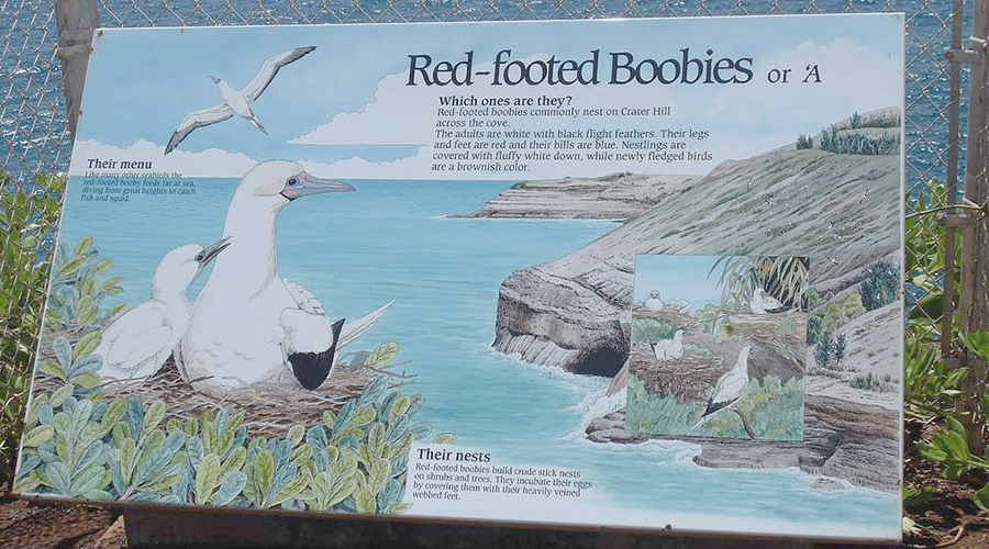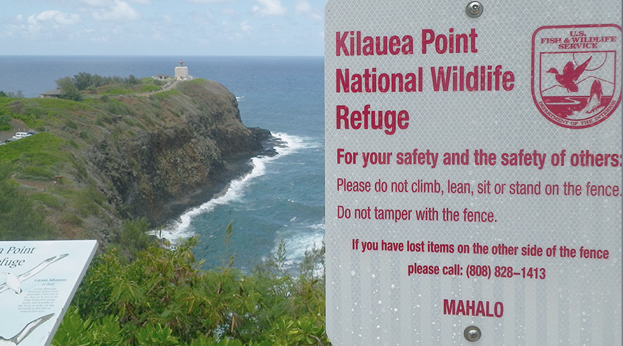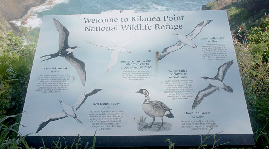 바닷새 보호구인 킬라우에아 포인트 국립야생보호구역이기도 하지요. 보호구역 전체에 있는 안내표지는 프리깃, 섬새류, 가마우지, 신천옹 등