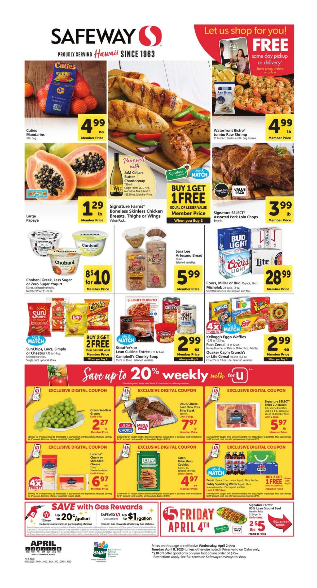 [ 하와이 생활마트 & 약국 ] "Safeway"(식품/야채/공산품/잡화 등..) :: 주간세일 - 2025년 4월 2일 ~ 8일