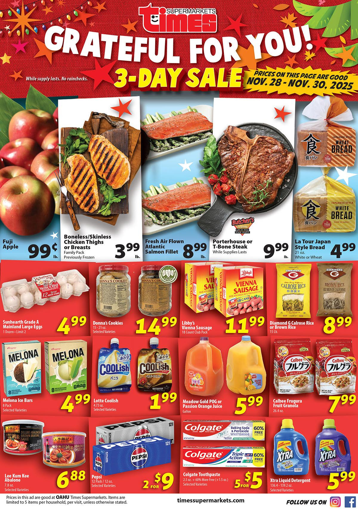 [ 하와이 마트&약국 ] "Times Supermarkets"(식품/야채/잡화) :: 세일정보 - 2025년 11월 28일 ~ 30일