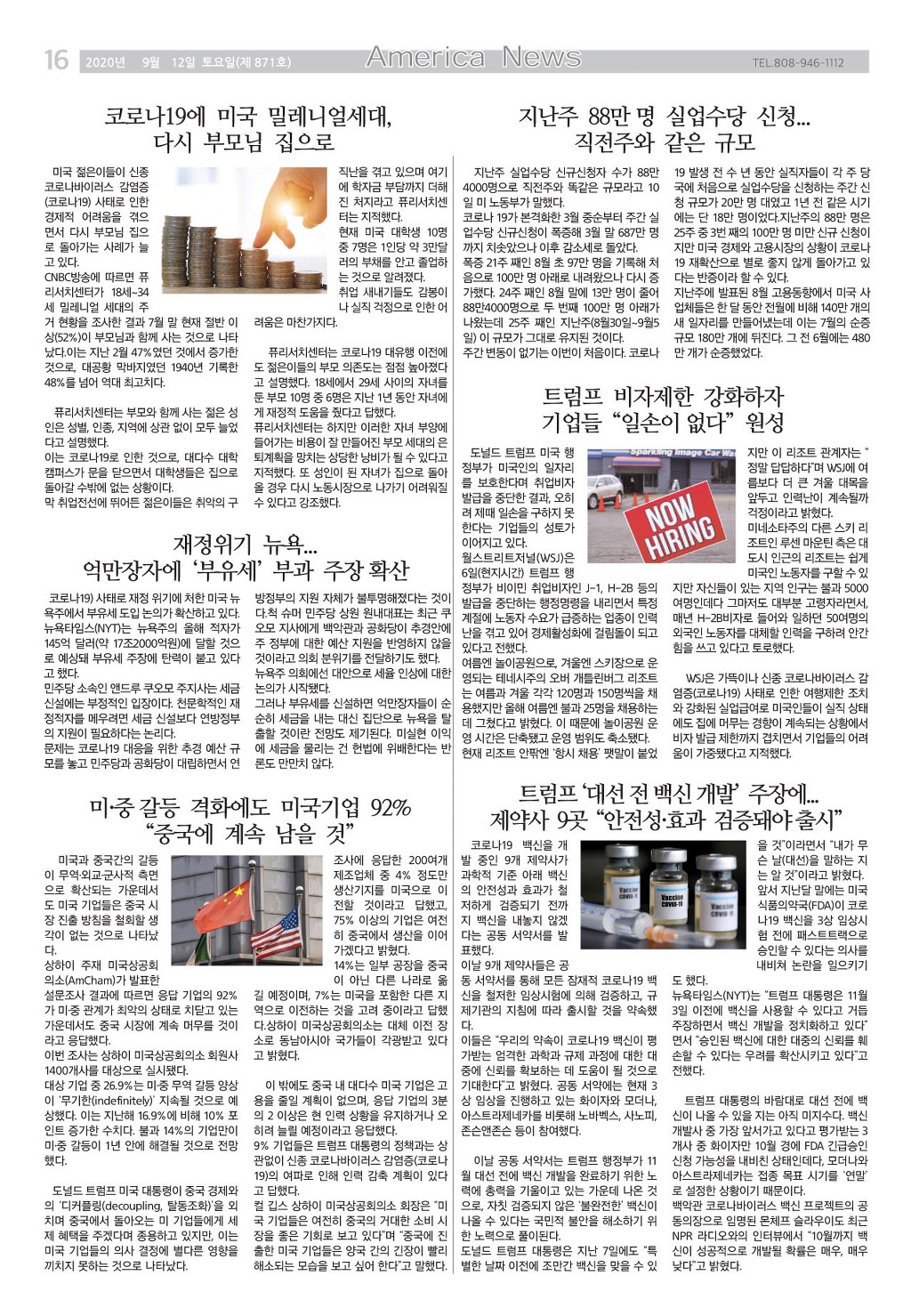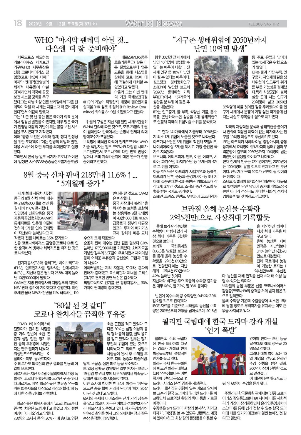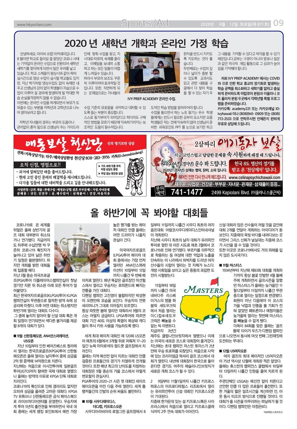[ 하와이 교차로 :: 2020년 9월 12일(토) ]