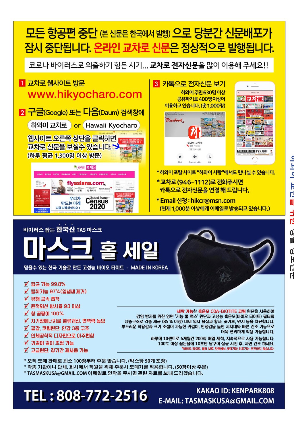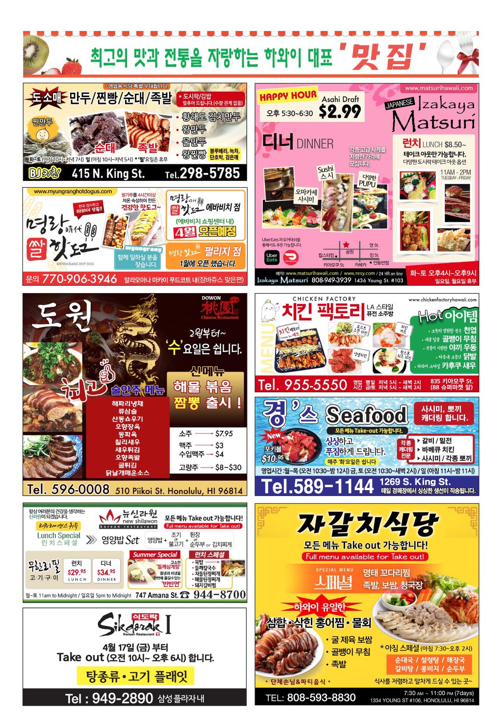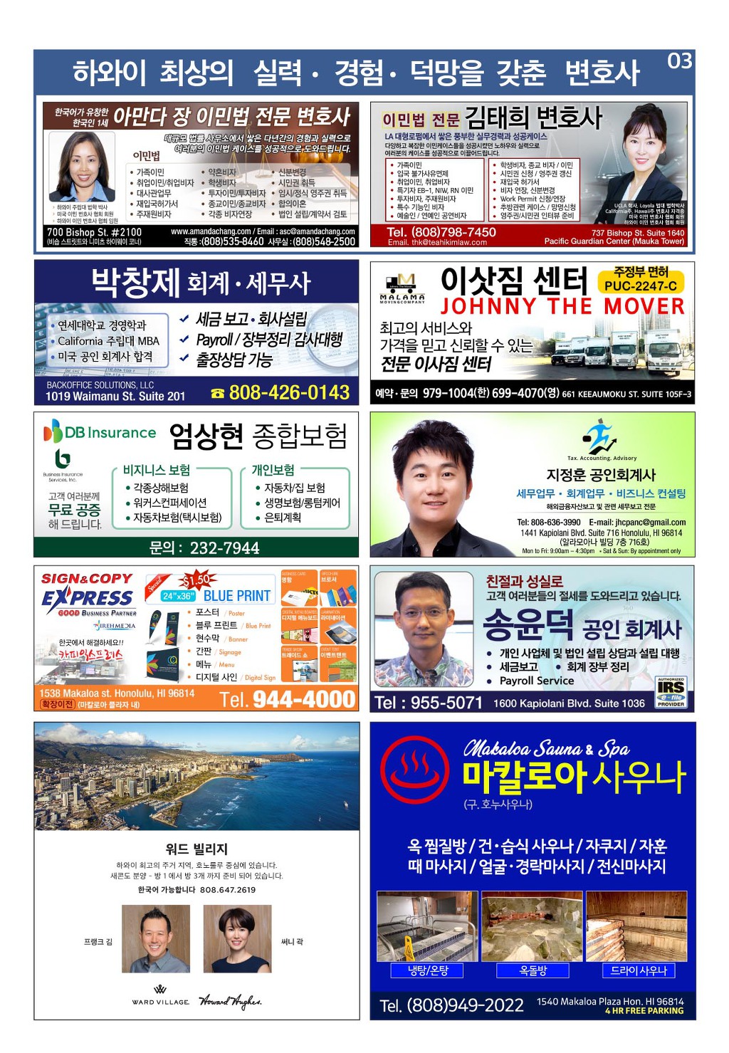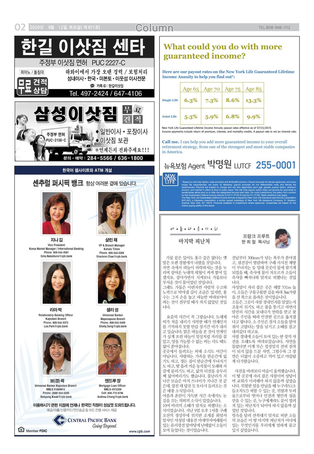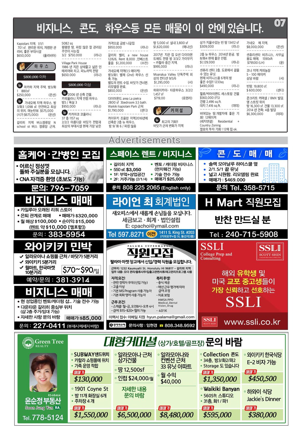 [ 하와이 교차로 :: 2020년 9월 12일(토) ] 구인/구직, 벼룩시장, 렌트(아파트/룸메이트), 부동산, 매매(사업체/자동차), 민박/콘도, 지역광고등..