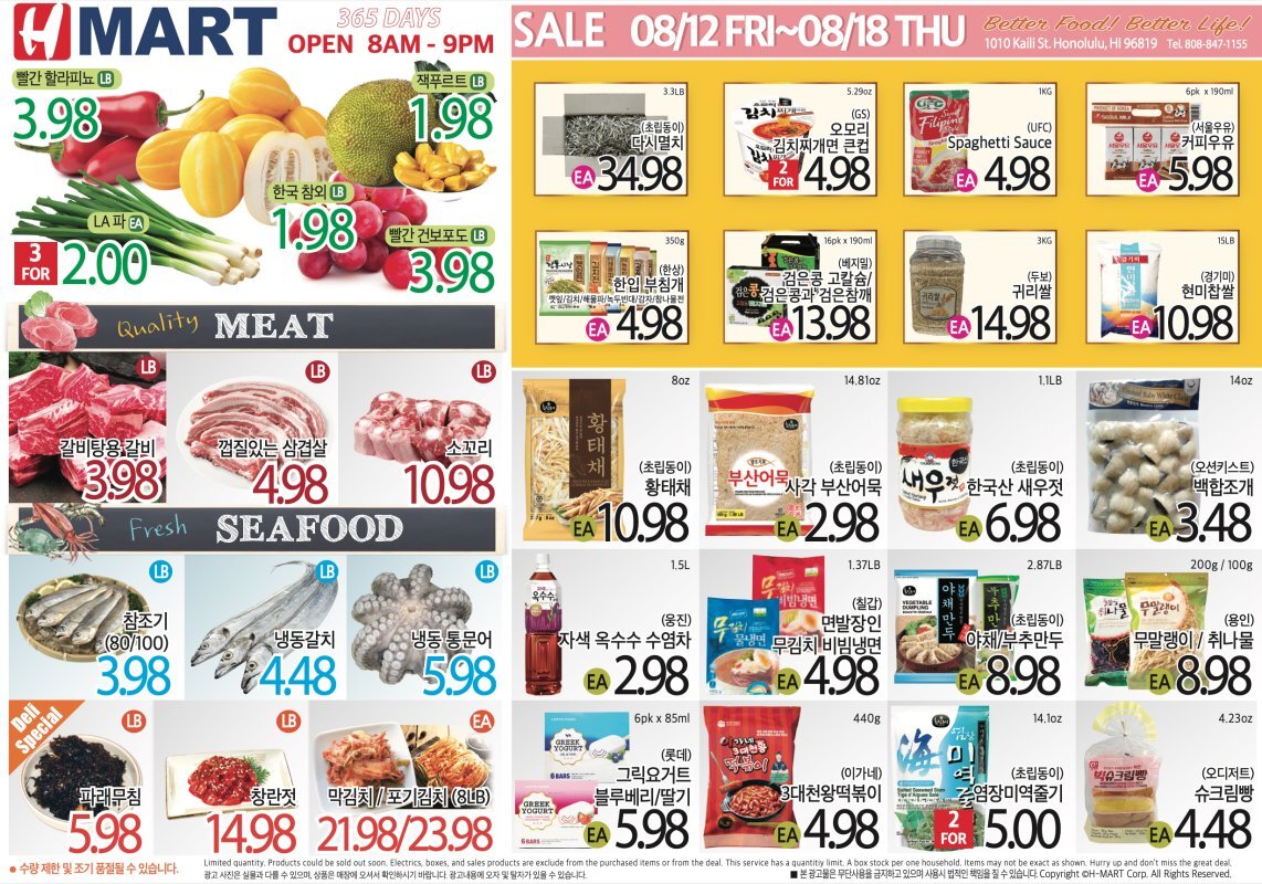 그 외, 미국 본토를 중심으로 여러 지역에 큰 대형 한인마켓들을 체인으로 운영하는 H마켓이 운영중이며, 호놀룰루 공항와 와이키키 중간쯤의 지역에 해당합니다.