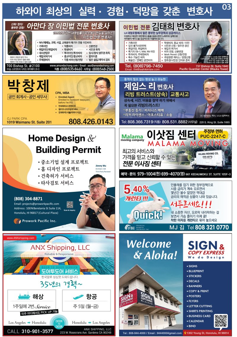 [ 하와이 교차로 :: 2023년 5월 20일(토) ] 구인/구직, 벼룩시장, 렌트, 부동산, 매매, 한인 지역광고등..
