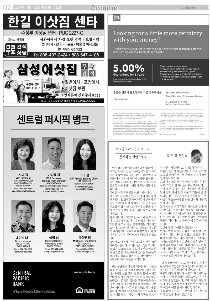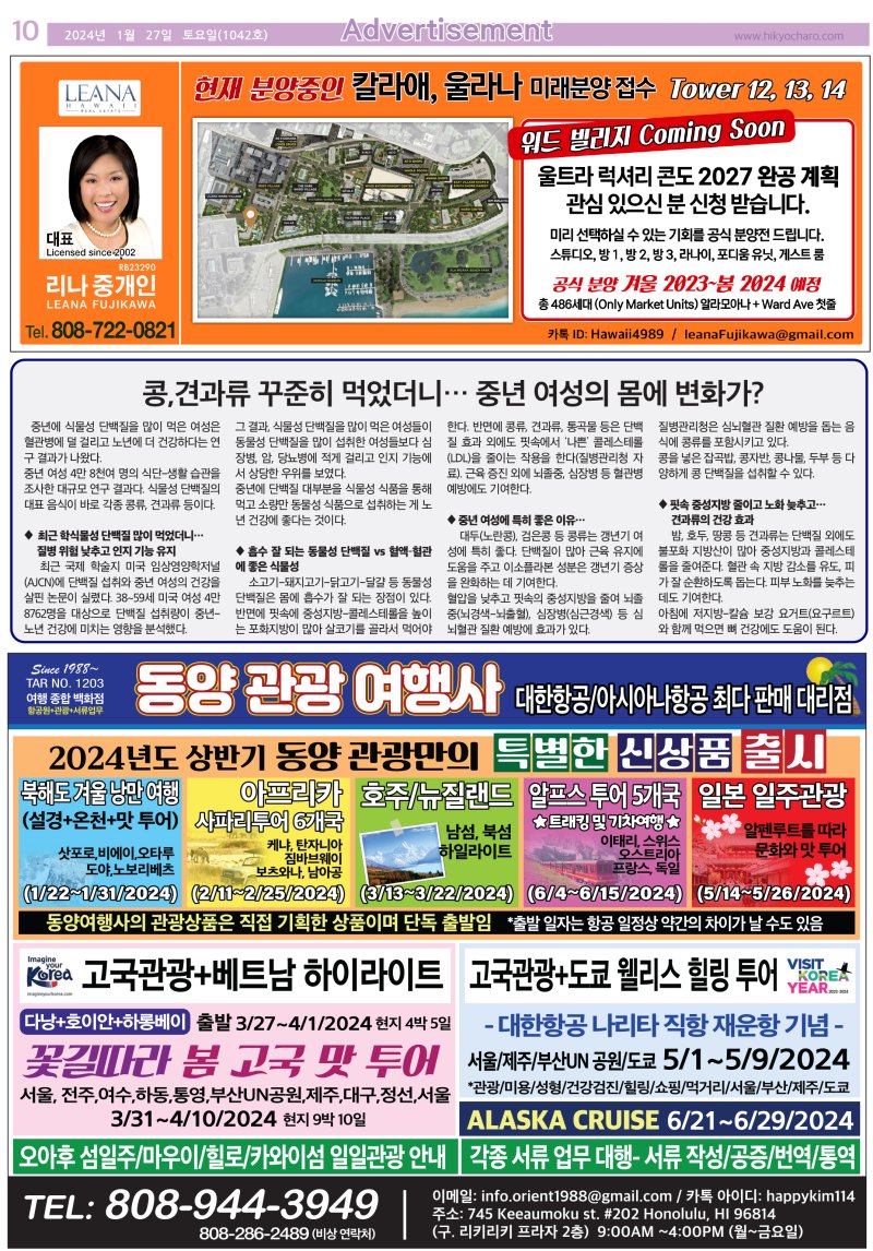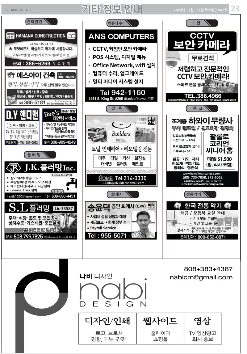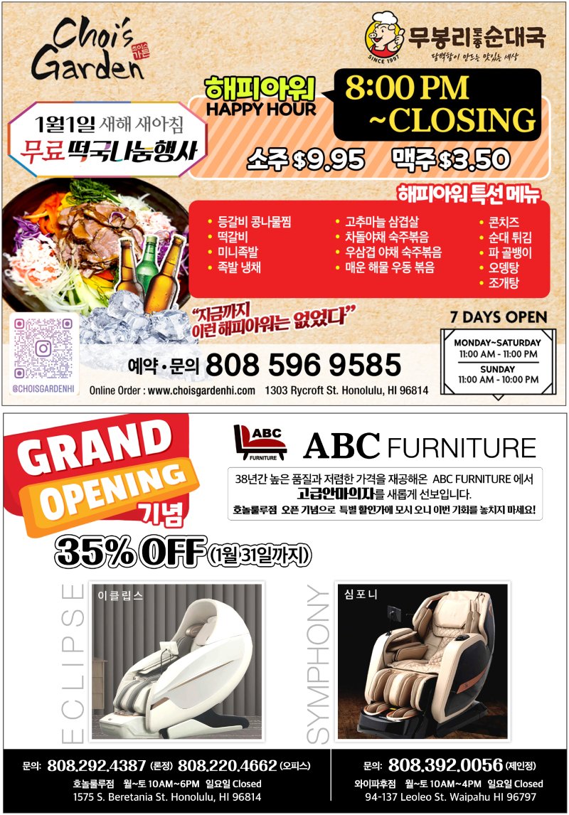 [ 하와이 교차로 :: 2024년 1월 27일(토) ] 구인/구직, 벼룩시장, 렌트, 부동산, 매매, 한인 지역광고등..
