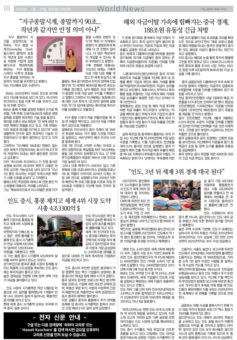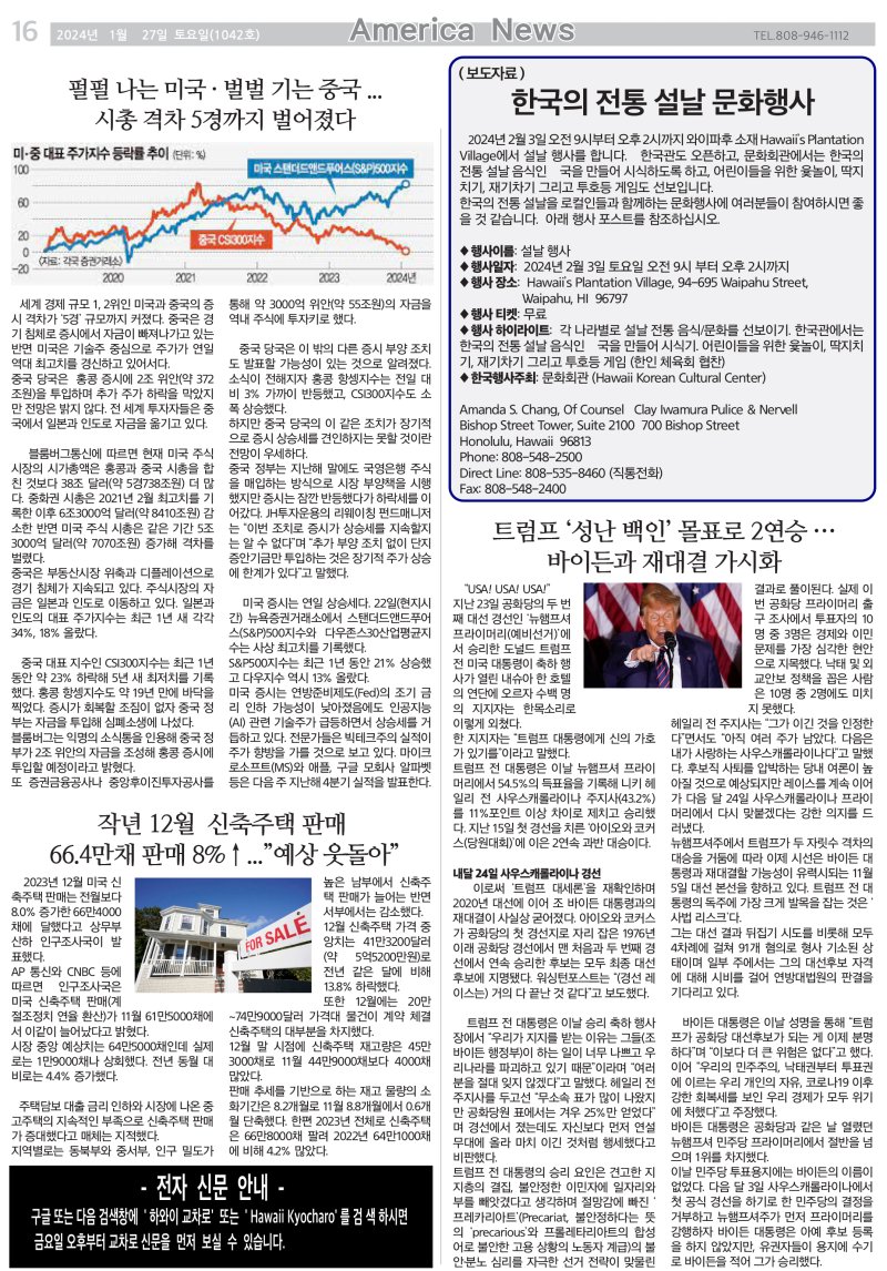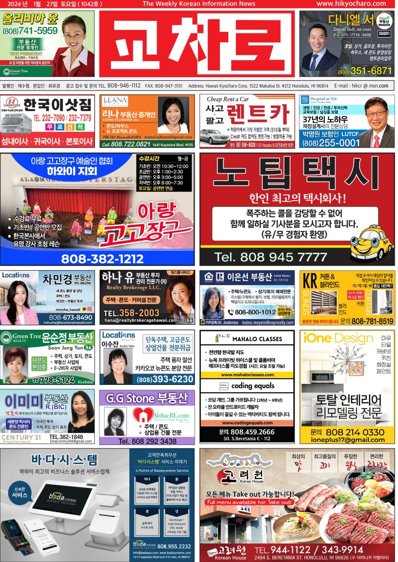 [ 하와이 교차로 :: 2024년 1월 27일(토) ]