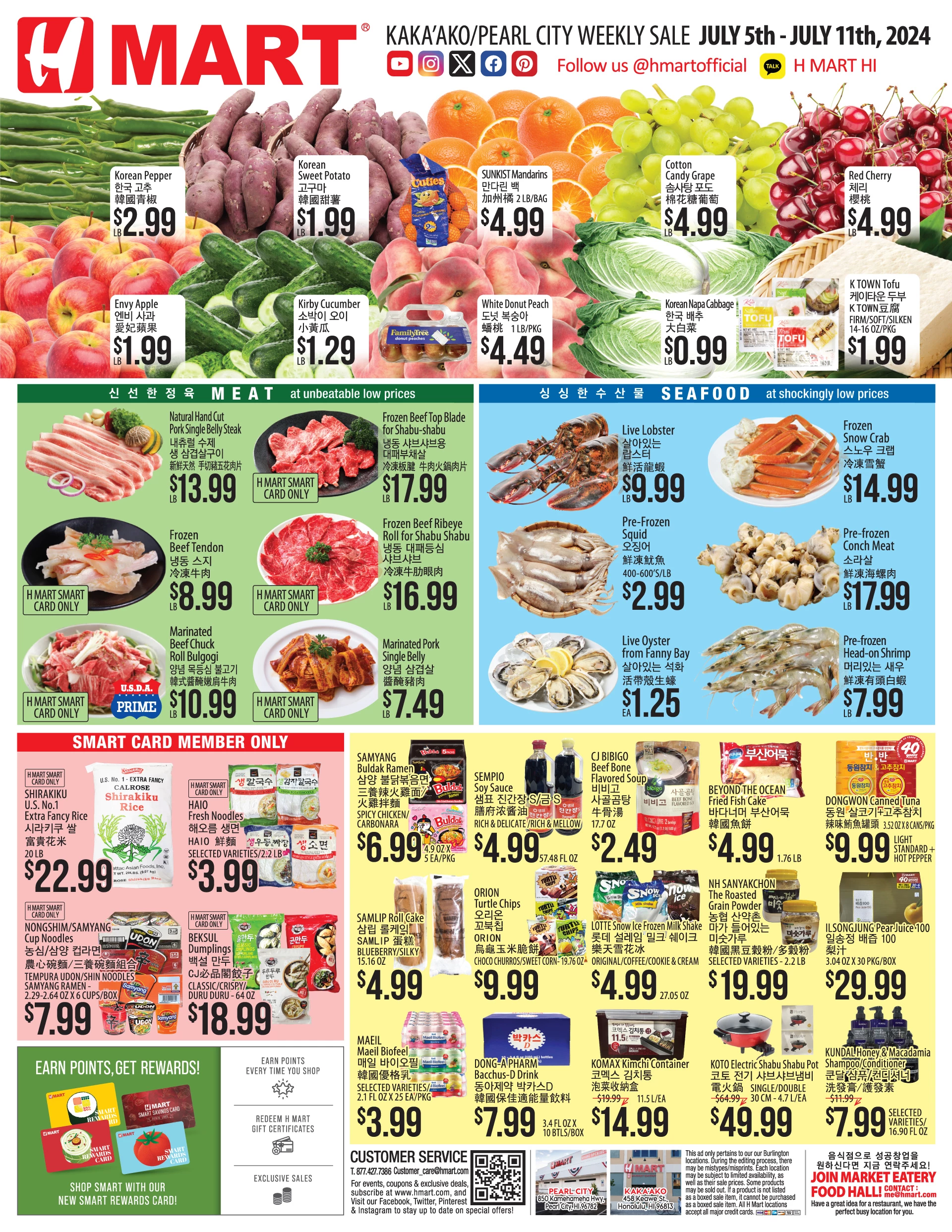 [ 하와이 한국마켓 쇼핑 ] "H Mart"(카카아코/펄시티) :: 주간세일 - 2024년 7월 5일(금) ~ 11일(목)