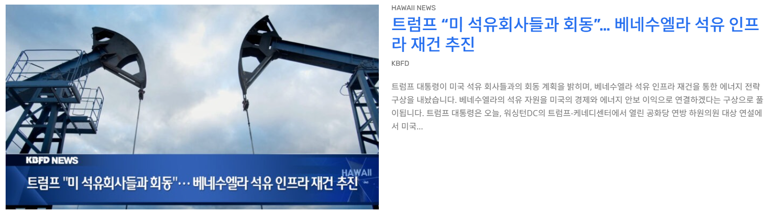 [ 하와이 현지뉴스 :: "KBFD" (한인TV) ] 2026년 1월 6일 - 하와이안항공, 공항·기내 전면 개선 추진 작성자HI-Jenny|작성시간26.01.07|조회수84 목록 댓글 0 글자크기 작게가 글자크기 크게가 [ 하와이 현지뉴스 :: "KBFD" (한인TV) ] 2026년 1월 6일 - 하와이안항공, 6억 달러 이상 투자… 공항·기내 전면 개선 추진 다음검색 현재 게시글 추가 기능 열기 북마크 공유하기 신고 센터로 신고 댓글 댓글 0 댓글쓰기 답글쓰기 댓글 리스트