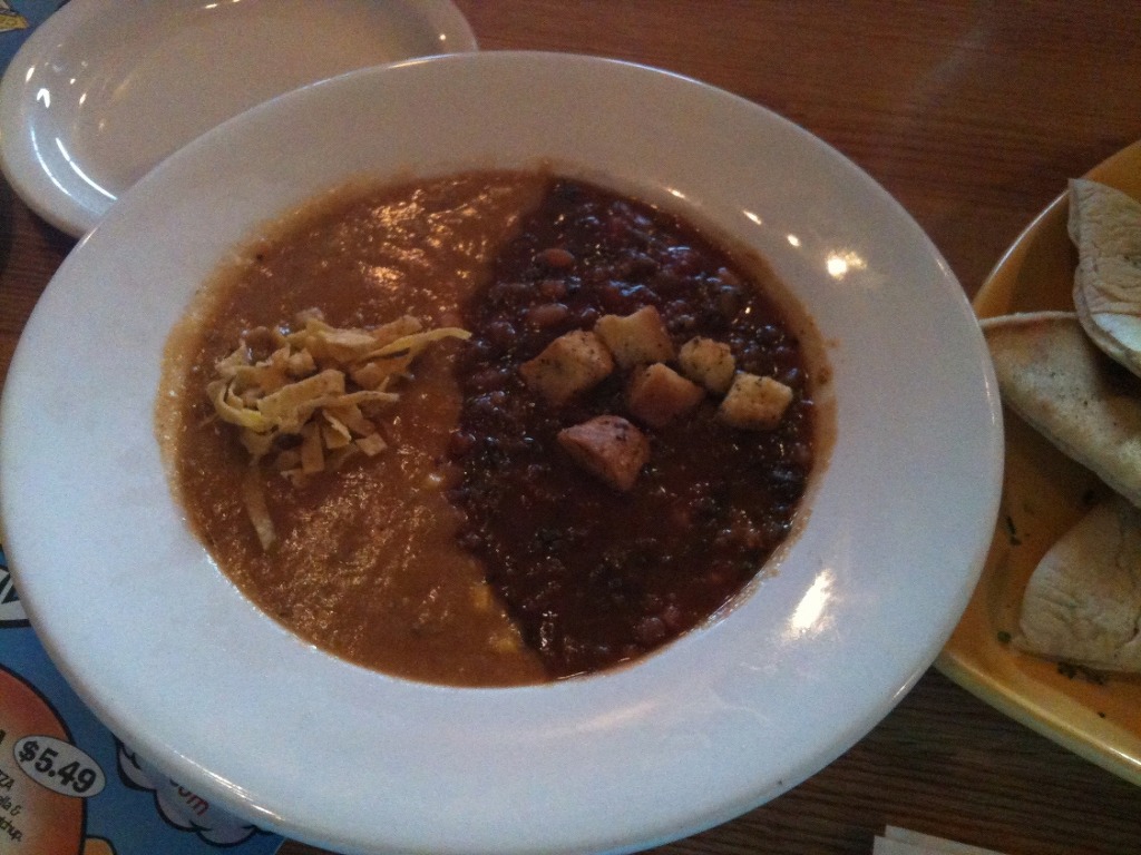 Two in a Bowl 이라는, 두가지 스프를 한접시에 담아주는 서비스입니다. 어떤 것을 골라는지는 생각이 나지 않네요.