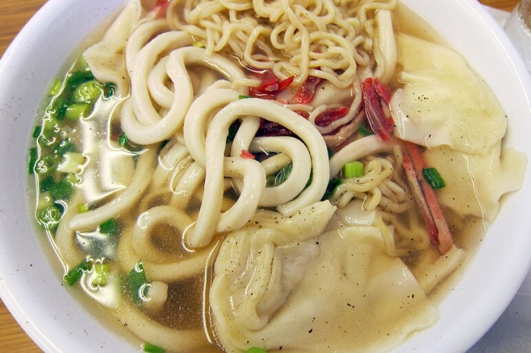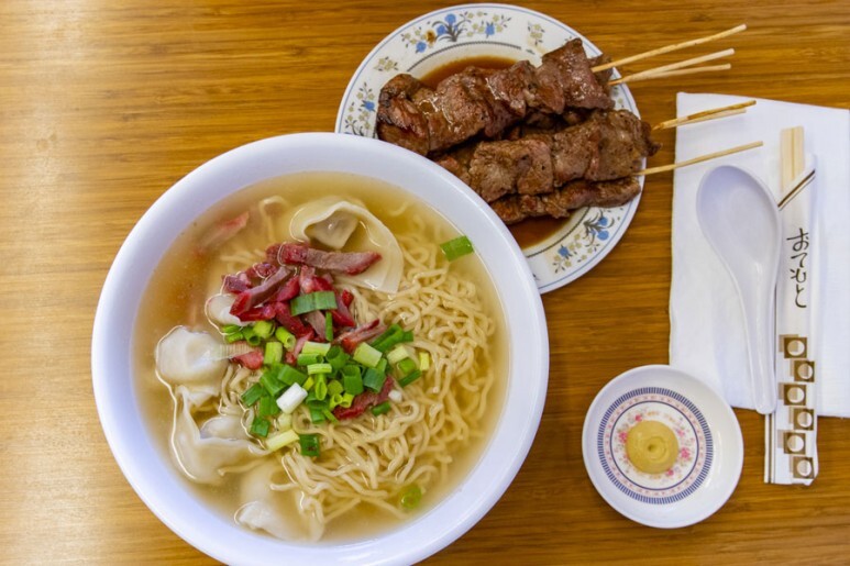 아시아식 완탕면과 특히 고기꼬치가 유명합니다.