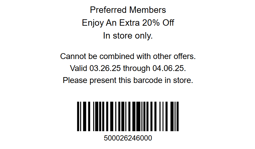 Please present this barcode in store.