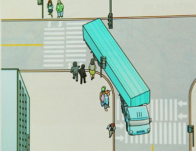 차량의 절반정도가 빠져나가야 내륜차를 극복하고 본인차량과 장애물을 피해 안전하게