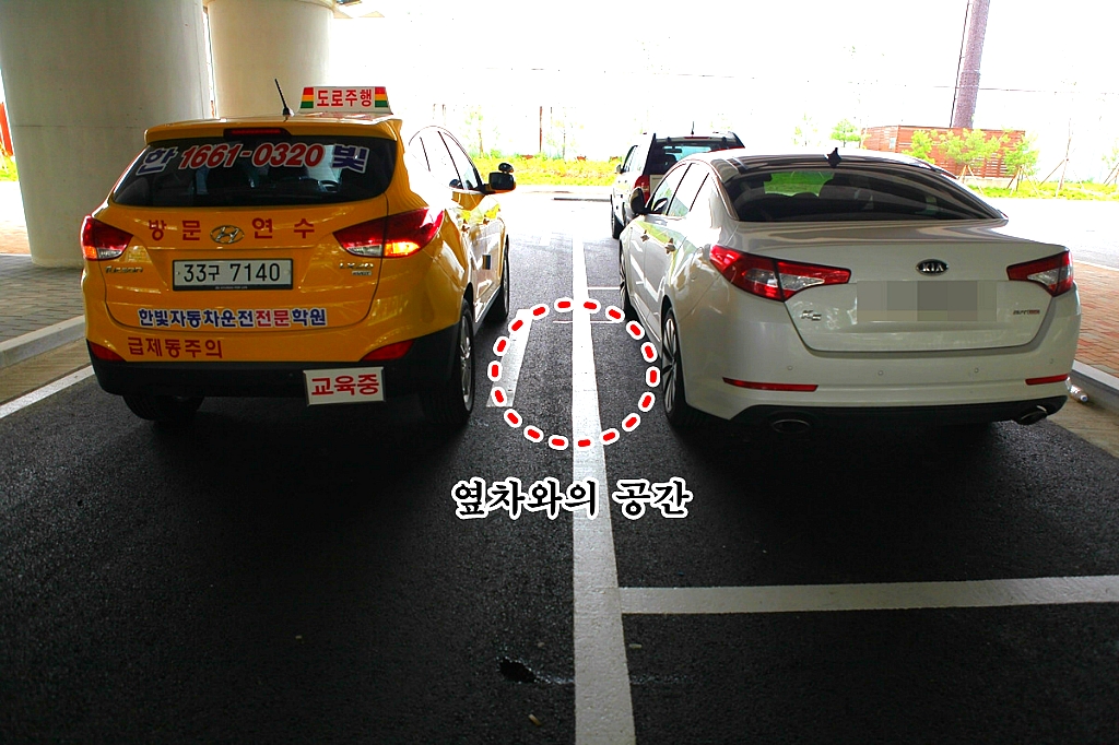 옆차와의 공간은 대략 50cm~1m정도 ( 사람이 타고 내릴수 있을정도의 공간) 옆공간이면 충분합니다