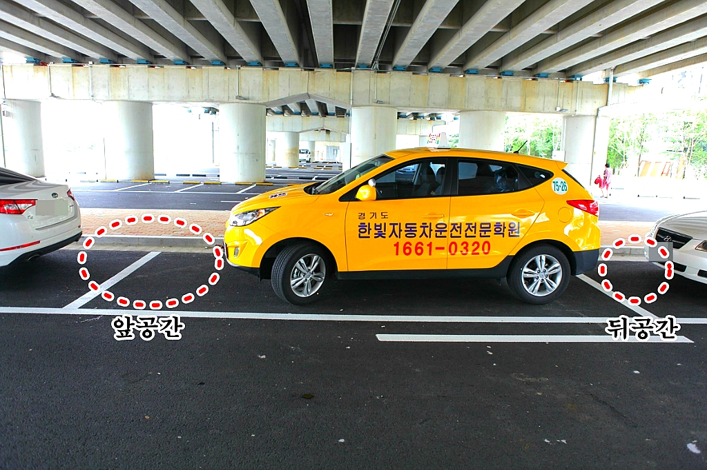 팁) 평행주차에서 나가실때는 타시기전 뒷차의 거리도 확인하셔야 후진하실때 도음이 됩니다