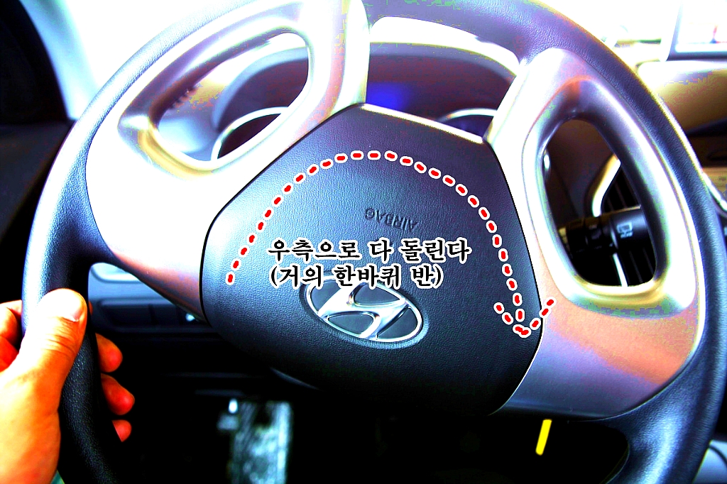 8. 헨들을 좌측으로 다 돌린후에 계속해서 후진을 합니다