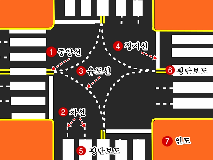 큰 교차로나 여러개의 좌회전을 동시에 할 경우에 절대적으로 필요한 점선이지만