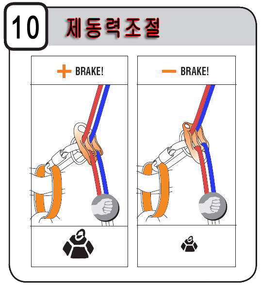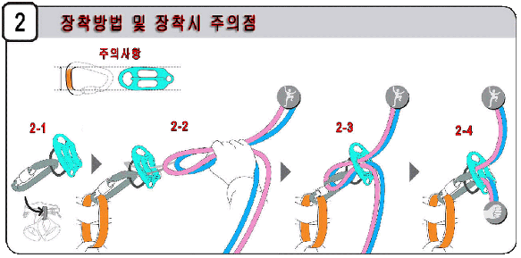주의사항2 : 본 장비는 특성상 두개의 로프가 직경이 같아야 동일한 제동력을 발휘하므로 반드시