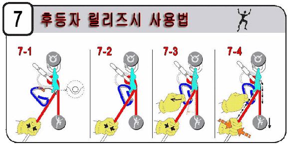7. 후등자 등반중 로프를 릴리즈할 경우(풀어줄 경우) 사용법