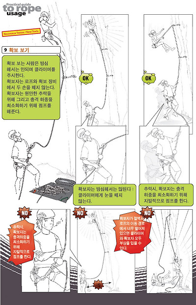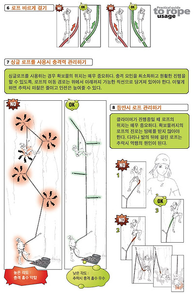 <로프(자일)는 직접 일일히 육안검사와 점검관리가 필요하다.>
