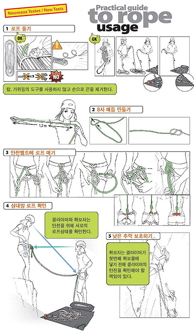 자일은 생명과 연관되는 것이므로 소중이 다루어야 한다. 우선 자일을 밟아선 안 된다.