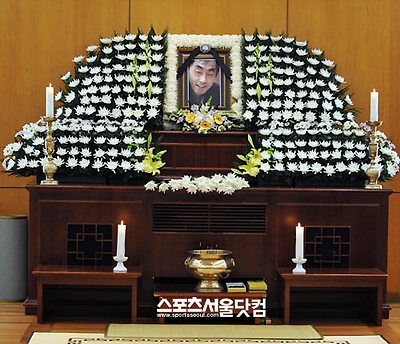 국화꽃 속에 있는 故박광정의 영정사진