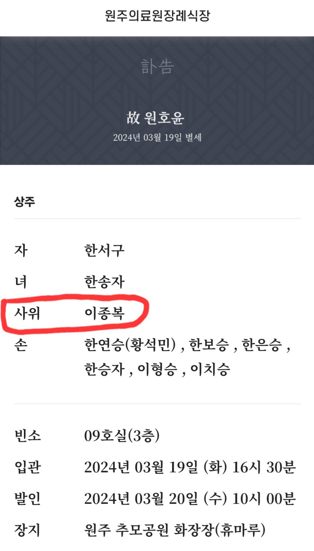 이종복(농) 빙모께서 2024년 3월 18일 별세하셨기에 삼가 알려드립니다