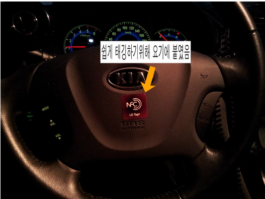6. 이제 NFC Tag 스티커에 기록은 하였으니, 이 스티커를 차량에 부착시킴니다.(위에 핸들그림)