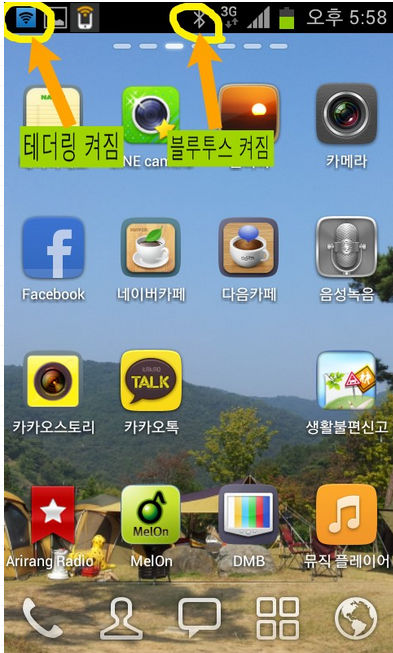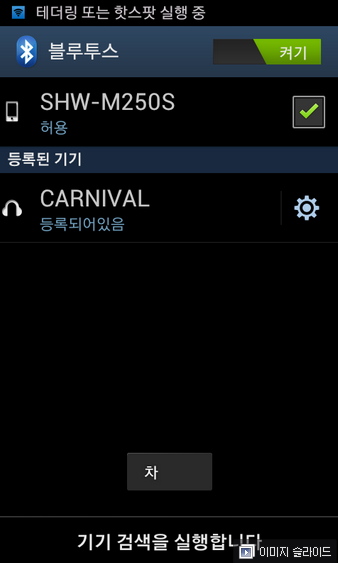 - 실행액티비티 : 블루투스가 켜지긴하지만 카오디오랑 자동연결이 안되는 관계로 연결창까지띄워주는면 그나마 편함.