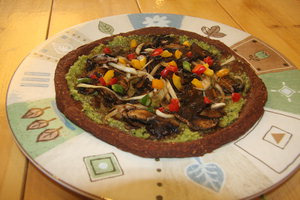 네 번째는 피자. 도우 위에 리코타 치즈 소스가 발려져 있고 그 위에 양파, 버섯 등이 올려진 피자였다. 맛도 전혀 거부감이 없이 입에 착 붙었다. 감탄사가 여기저기서 나오자 김 대표는 "한국식으로 간장이 조금 들어가니까 구미에 당기는 모양"이라며 웃었다. 우리나라 장류는 콩을 삶아 발효시키므로 로푸드에 속하지 않는다. 하지만 김 대표는 "맛이 없는 로푸드는 아예 사람들이 먹지 않으니 한국적인 양념을 적용하는 방법에 관해 항상 고민한다"고 말했다. 물론 치즈도 우유가 아닌 견과류를 간 것과 바질을 넣어서 치즈의 고소함을 만들어냈다.