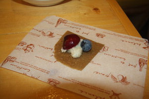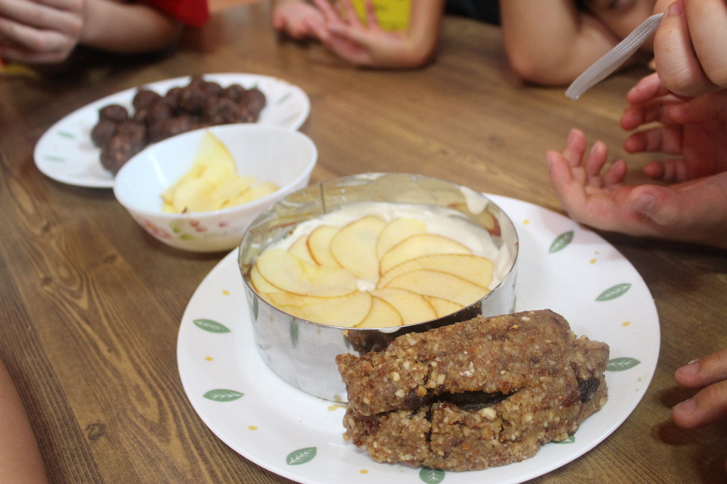 이날 하이라이트는 바나나 카나페였다. 바나나를 갈아 레몬즙을 약간 넣고 유산지 위에 올린 뒤 얇게 편다. 그리고 이것은 40~50도에서 열풍 건조하면 쫄깃하면서도 달콤한 반죽이 된다. 그 위에 캐슈너트 치즈를 올리고 체리나 블루베리를 얹어 먹으면 된다. 참가자 모두 "어떻게 이런 맛이!"라며 감탄하기 바빴다. 갈아서 말린 바나나는 향과 단맛이 농축된 데다 쫄깃한 식감까지 더했다. 거기다 고소한 견과류 치즈와 달콤하고, 상큼한 체리와 블루베리가 함께 있으니 고급 레스토랑에서 맛볼 만한 디저트 맛이었다.