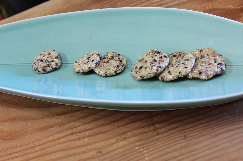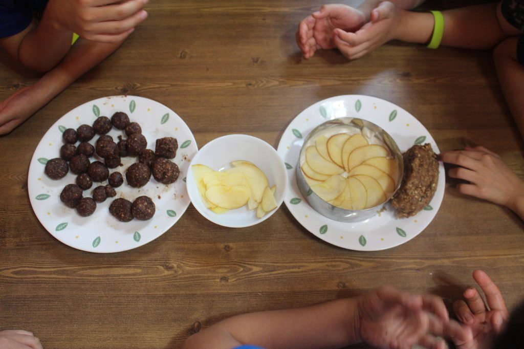세 번째로는 로푸드 미트볼. 해바라기 씨에 당근, 양파 다양한 채소를 다져 넣어 42~48도로 식품건조기에서 굳혔다. 이것을 애호박 파스타에 넣으면 애호박 미트볼 파스타가 된다. 고소하면서 말린 채소의 맛이 신기했다.