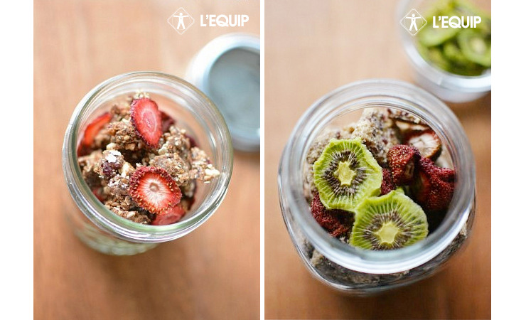 TIP. 투명한 유리병을 준비하고 그래놀라와 건조된 과일을 섞어 담아주세요.