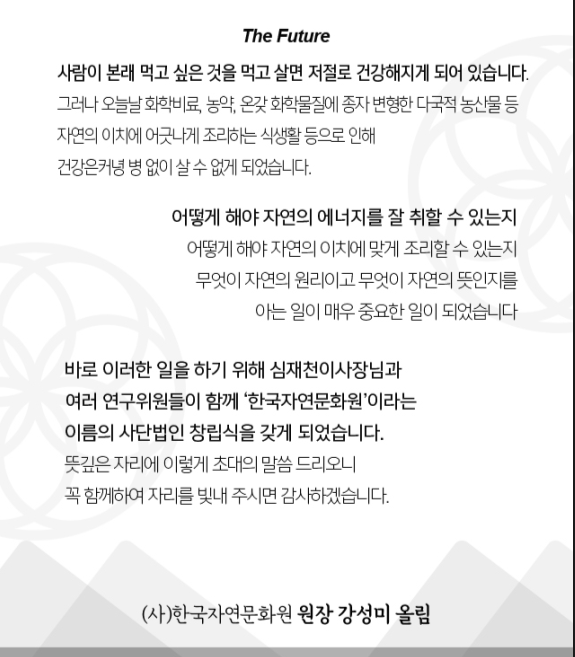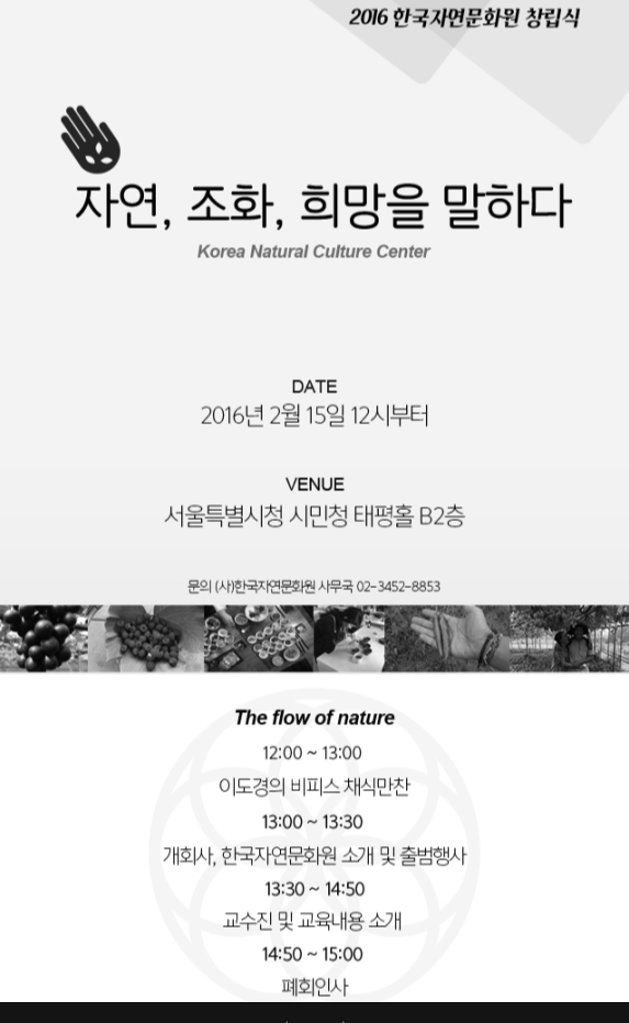 다음주 월요일(2/15) 한국자연문화원의 사단법인 창립식에 초대합니다.
