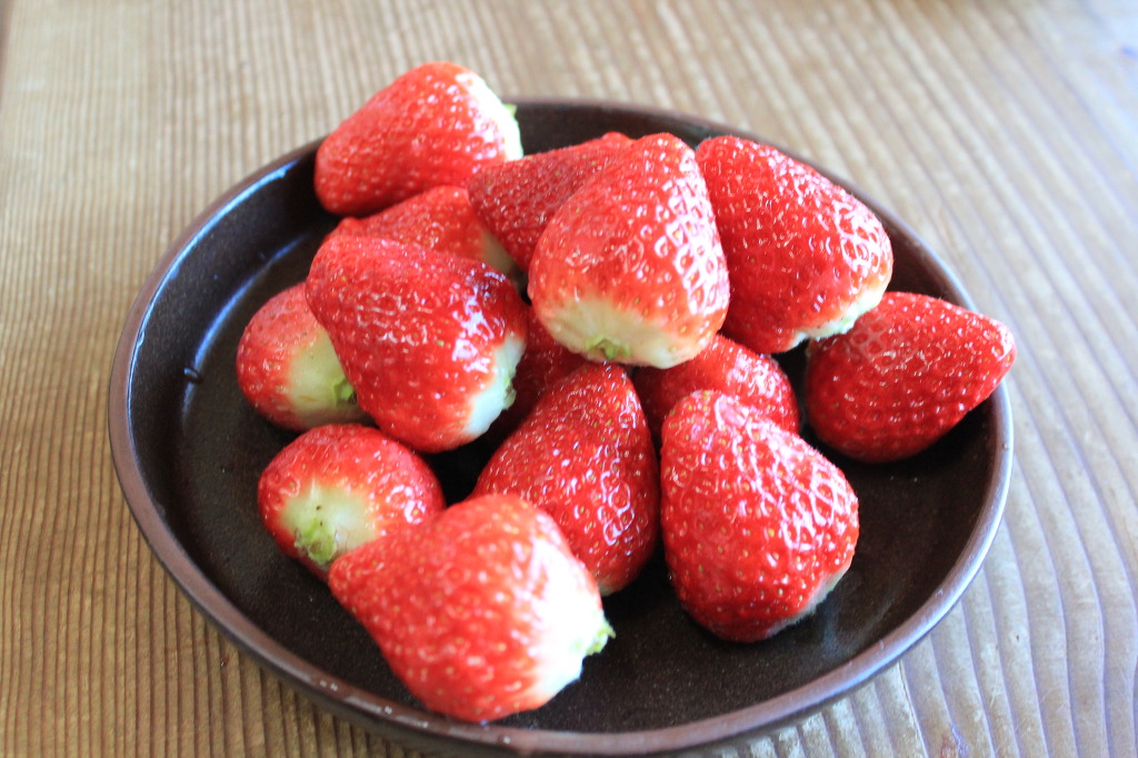 3. 사과는 작게 깍둑 썰기 하고 딸기와 키위 등은 얇게 슬라이스해 주세요.