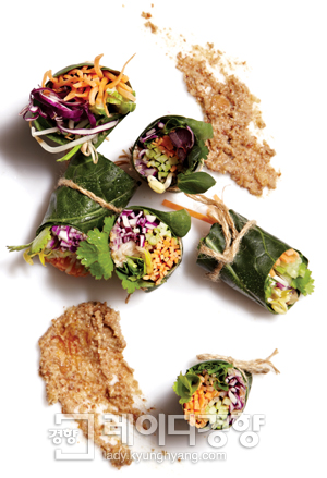 월남쌈에서 모티브를 얻은 메인 요리는 거부감이 적고 믹서만 있다면 언제든지 쉽게 만들어 먹을 수 있다. 생채식을 메인 요리로 했을 때 꼭 필요한 영양소를 놓치는 건 아닐까 하는 걱정은 하지 않아도 된다. 식물성 재료에도 단백질과 탄수화물 등의 필수영양소가 충분히 들어 있기 때문이다. 즙케일 랩의 경우 녹황색 채소인 즙케일을 사용해 칼슘을 보충할 수 있다.