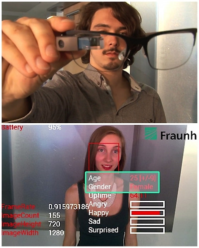 프라운호퍼 연구소가 개발한 이 앱에는 연구소가 세계 최초 개발한 감정인식 소프트웨어가 탑재됐다. 이 소프트웨어는 감정인식 알고리즘을 기반으로 약 1만개에 달하는 사람의 표정을 수집, 데이터화 해 구글글래스에 전송해준다.