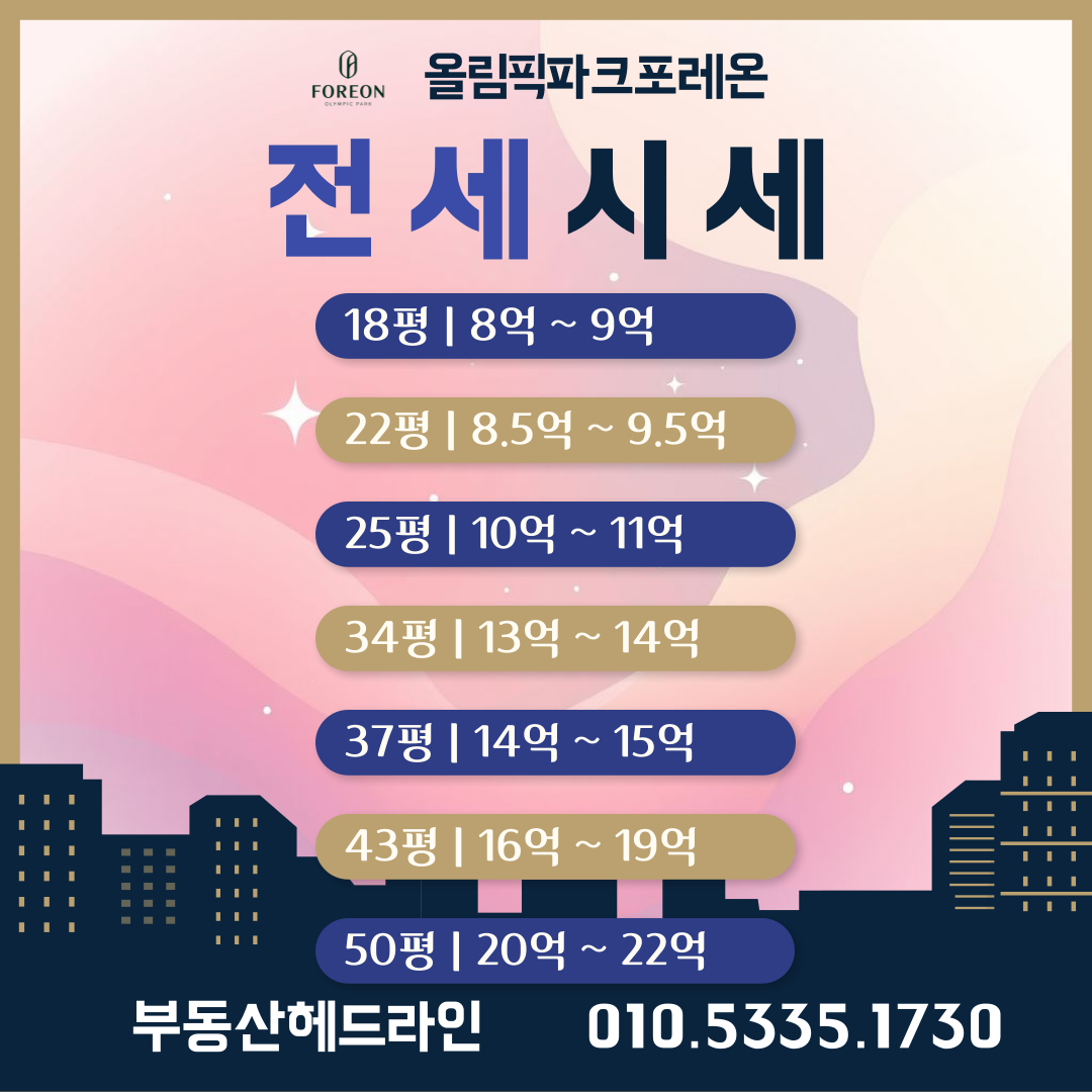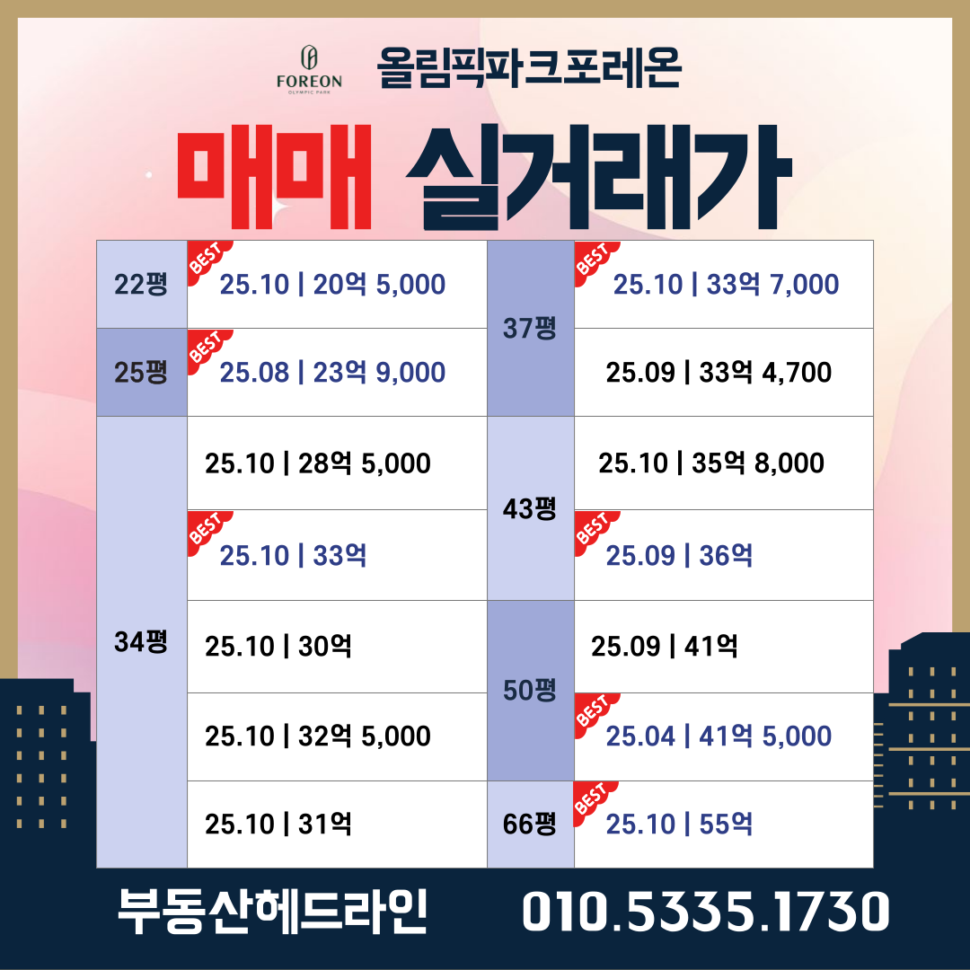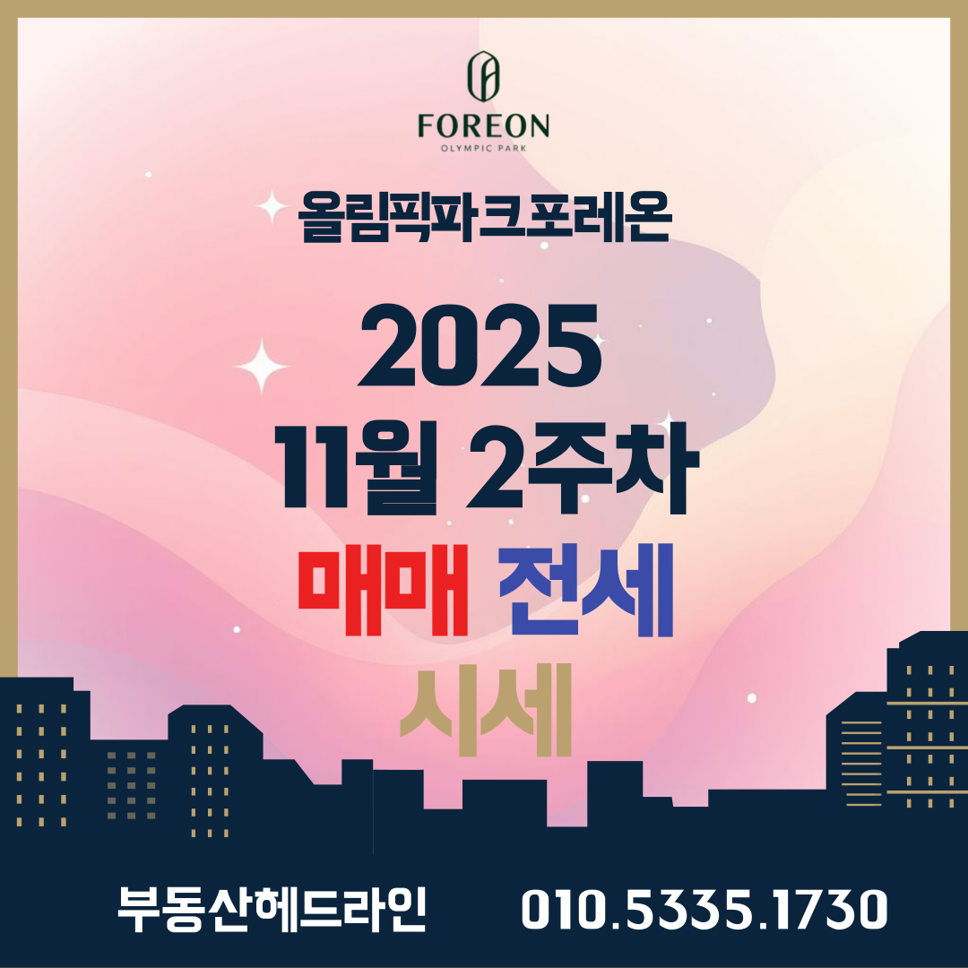 올림픽파크 포레온 2025년 11월 2주차 간략한 매매·전월세 시세 안내입니다.