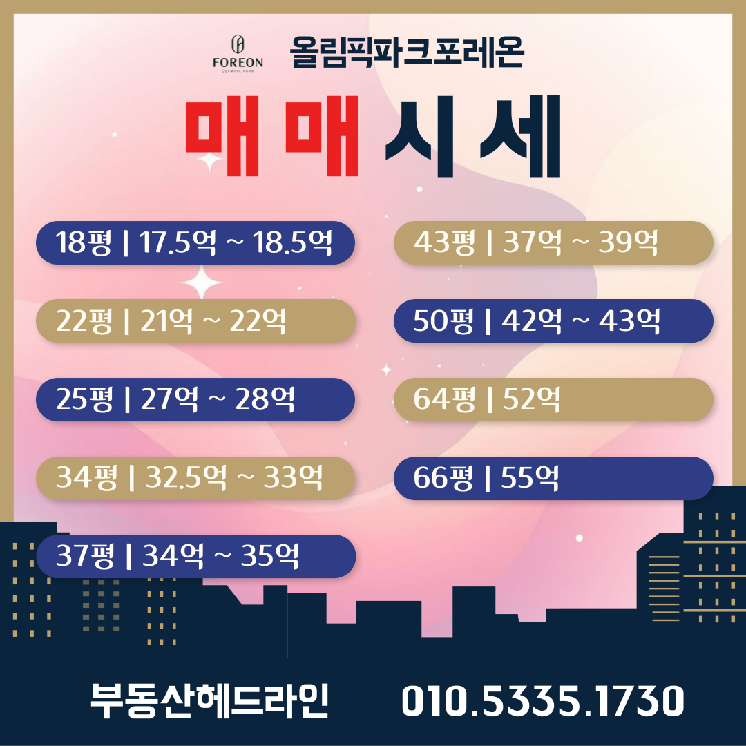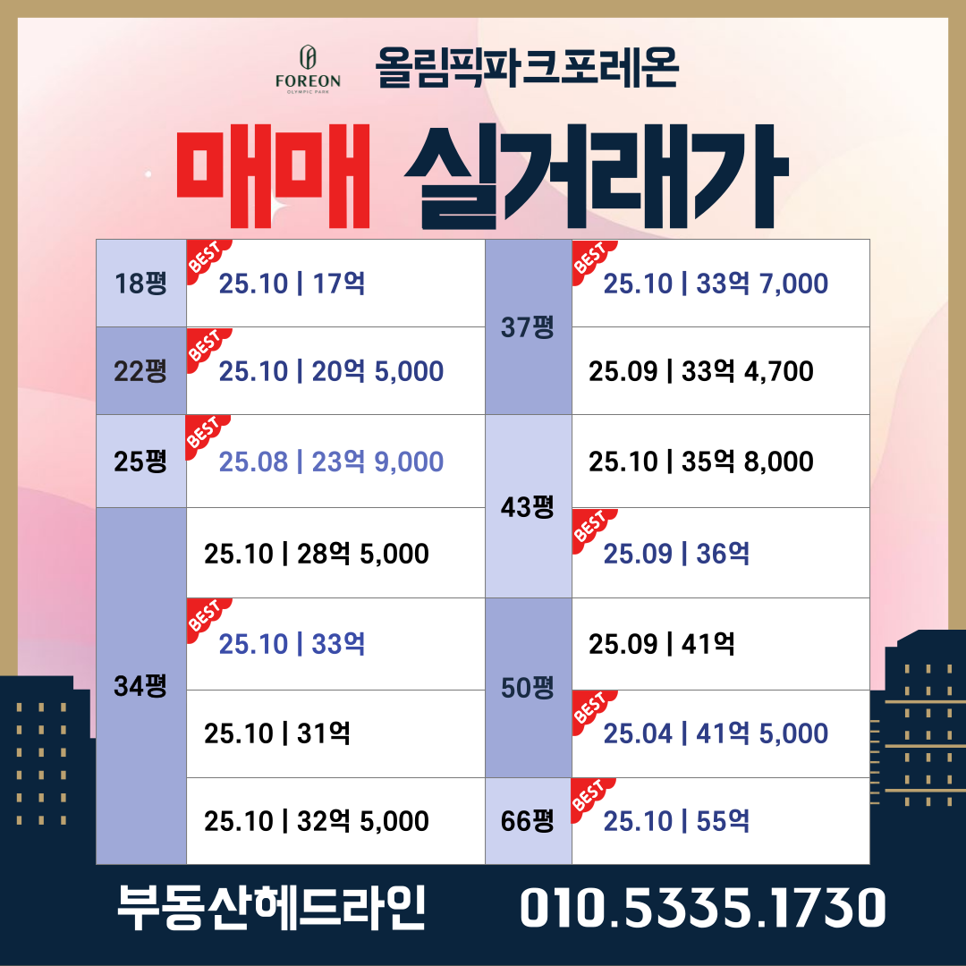 올림픽파크 포레온 2025년 11월 4주차 간략한 매매·전월세 시세 안내입니다.