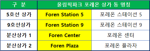 ◆ 올림픽파크 포레온 상가 동명칭 확정