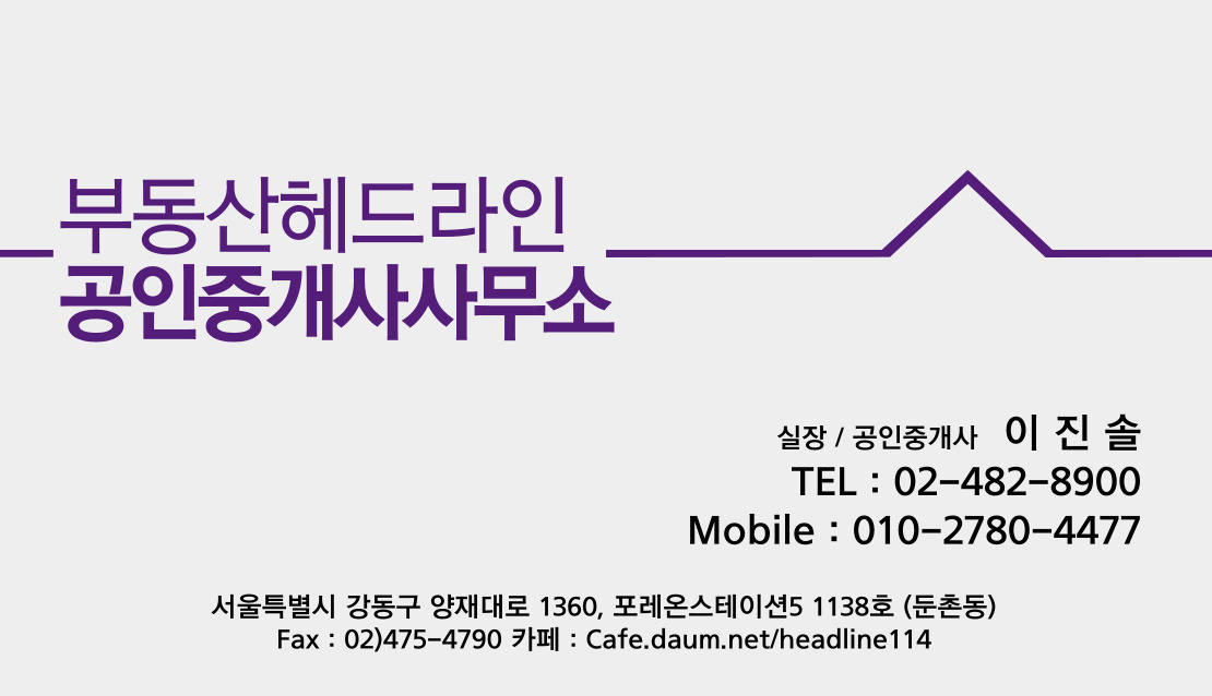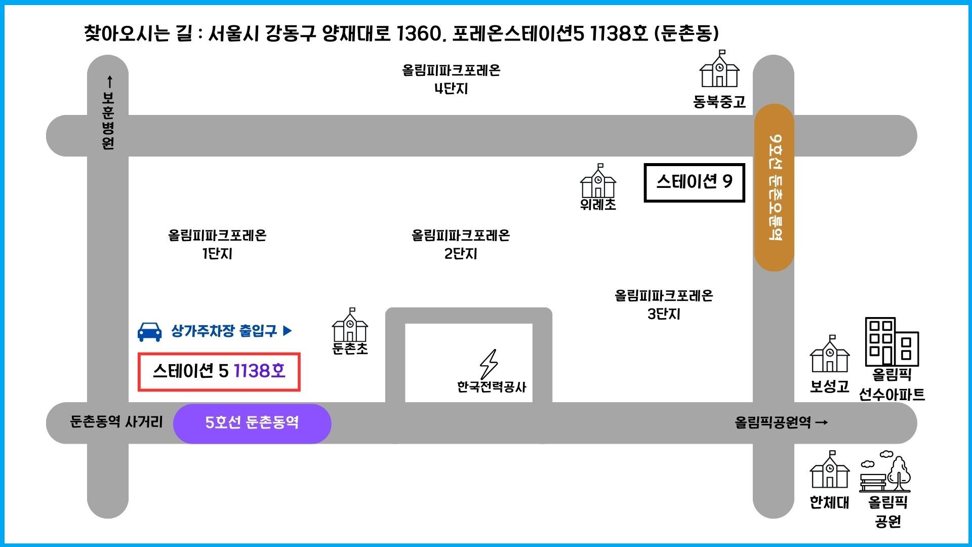 ▶ 주 소 : 서울시 강동구 양재대로 1360, 포레온스테이션5 1층 1138호 (둔촌동)