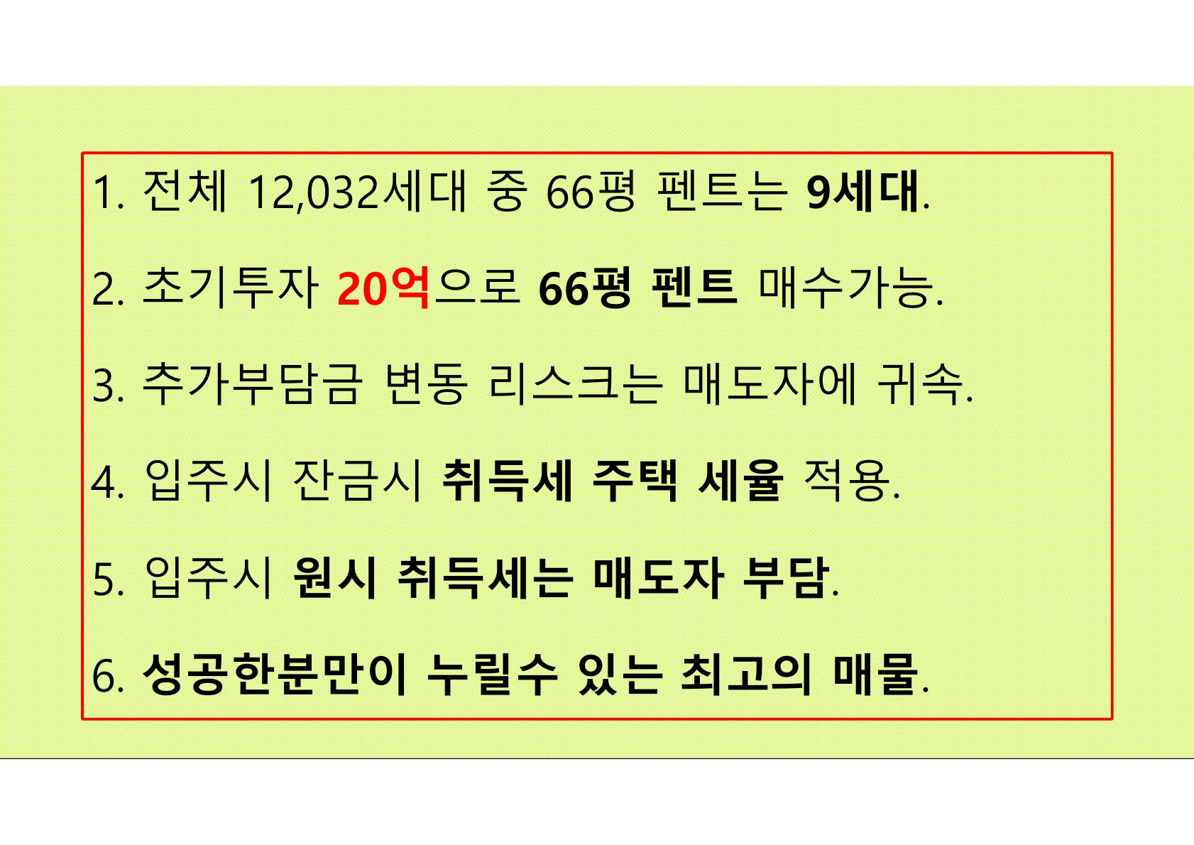 66평 펜트하우스는 전체 12,032세대 중 9세대로 희소성 매우 높음.