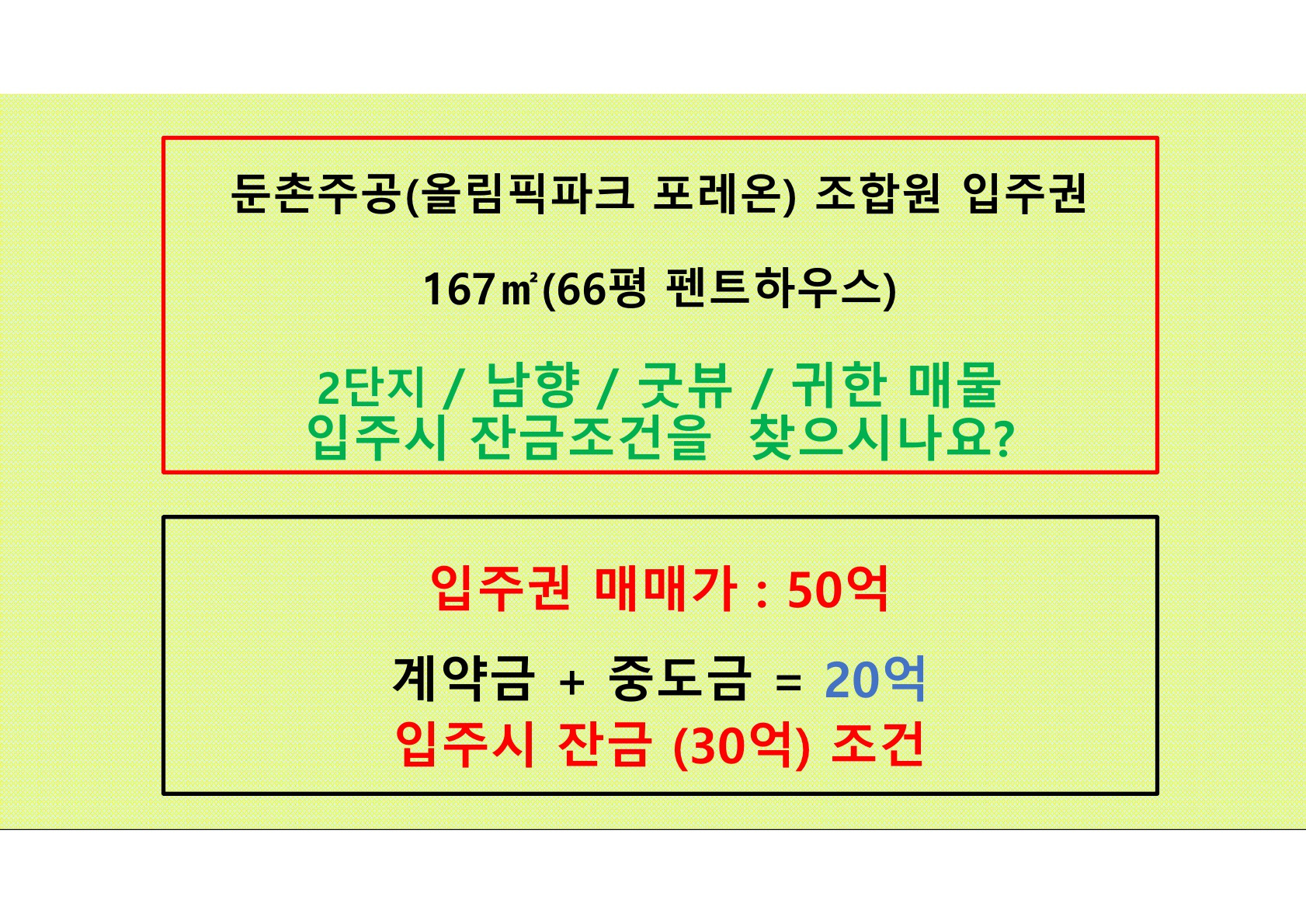 둔촌주공(올림픽파크 포레온) 조합원 입주권 2단지 167㎡(66평) 펜트하우스 매물 소개.