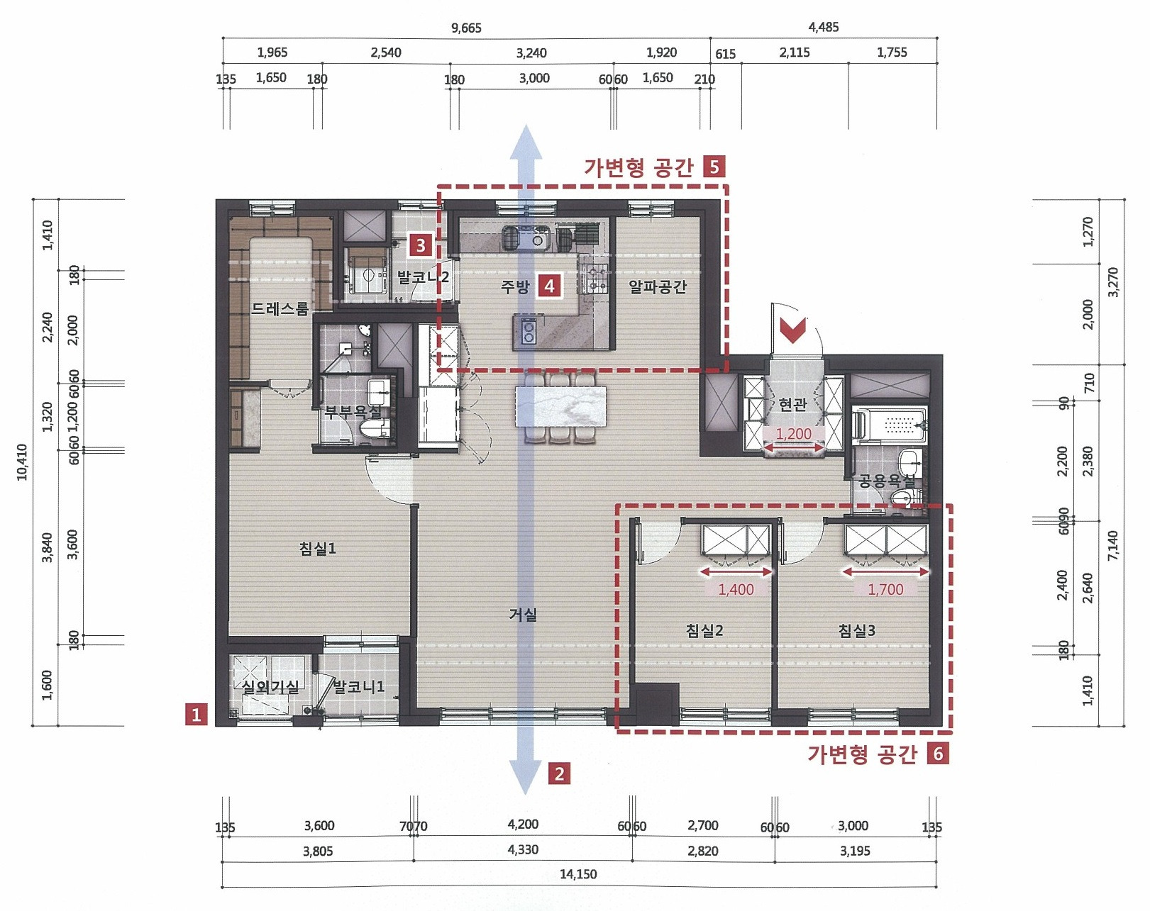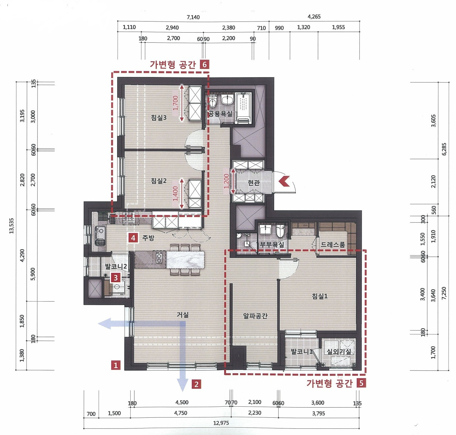- 방3 + 화2 구조로 3~4인 가족 실거주 적합