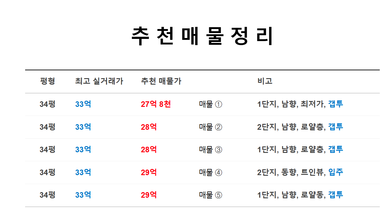 1단지 판상형 남향, 최저가매물