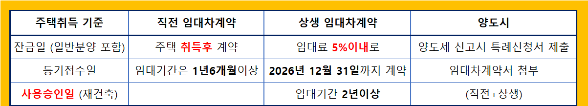- 주택 취득 후 임대차 계약을 해야. ( 임대차계약 승계는 X / 매도자가 매도후 전세계약은 O)