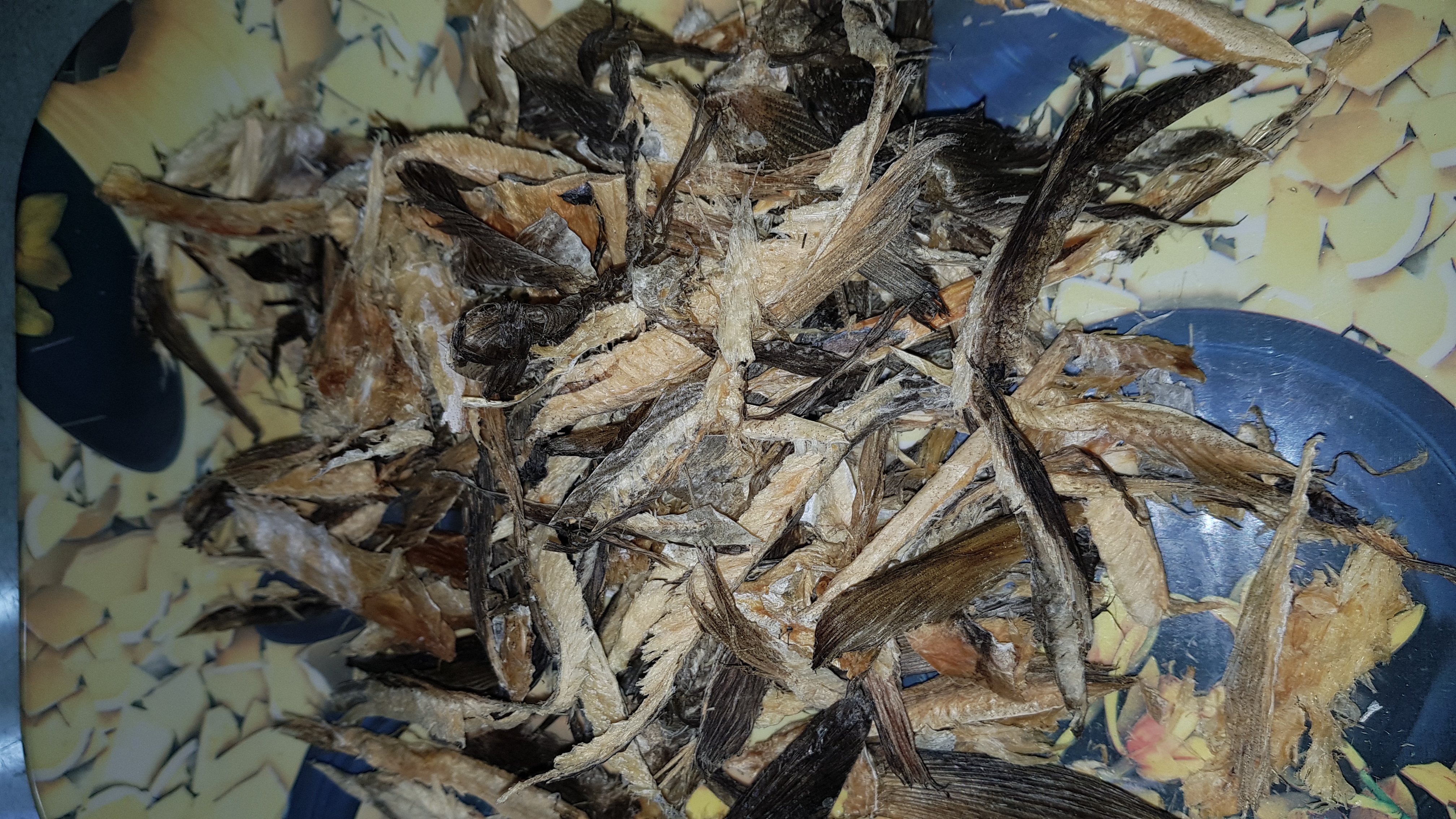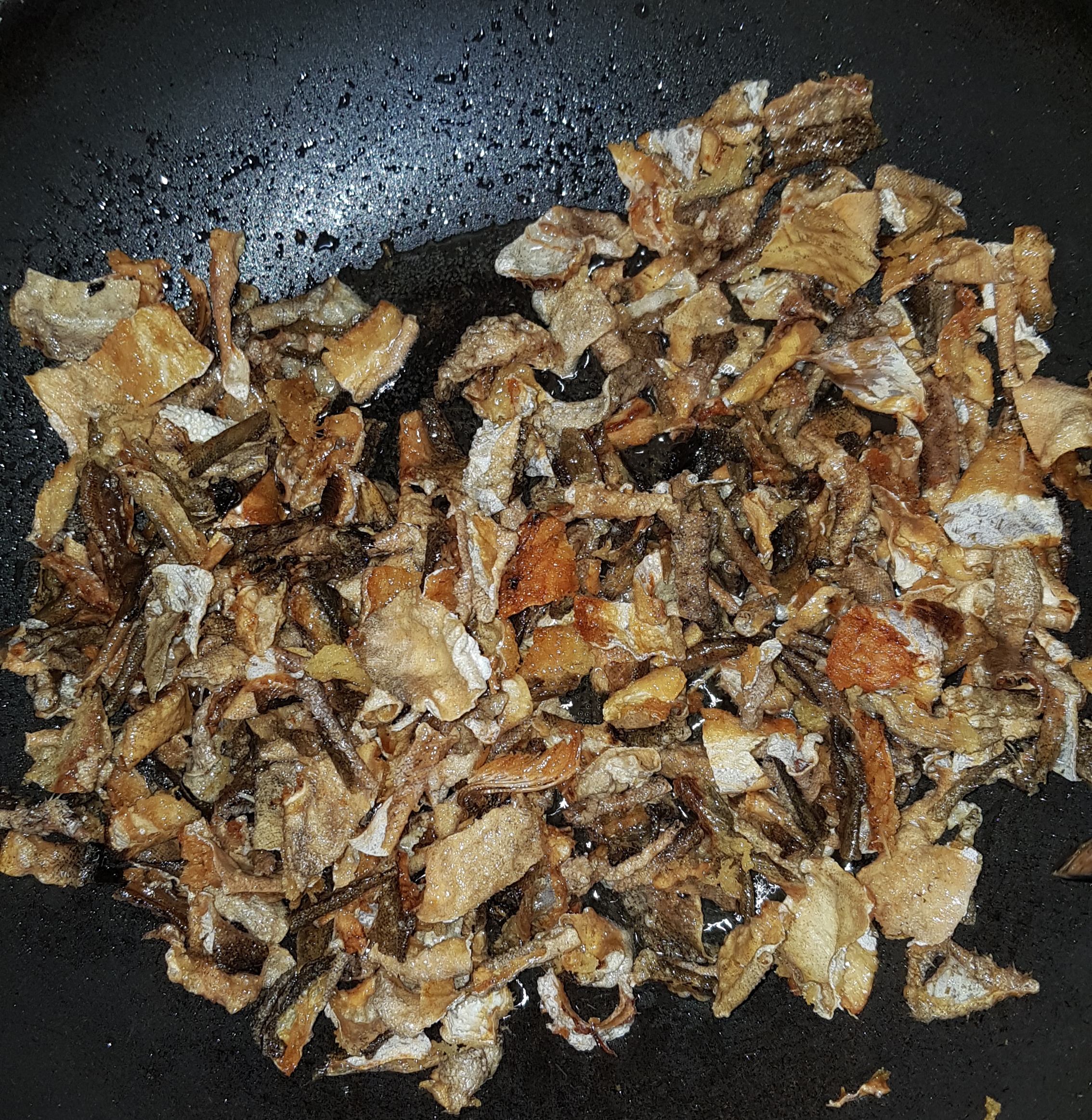 황태껍질을 넣고 수저 두개로 볶아주세요